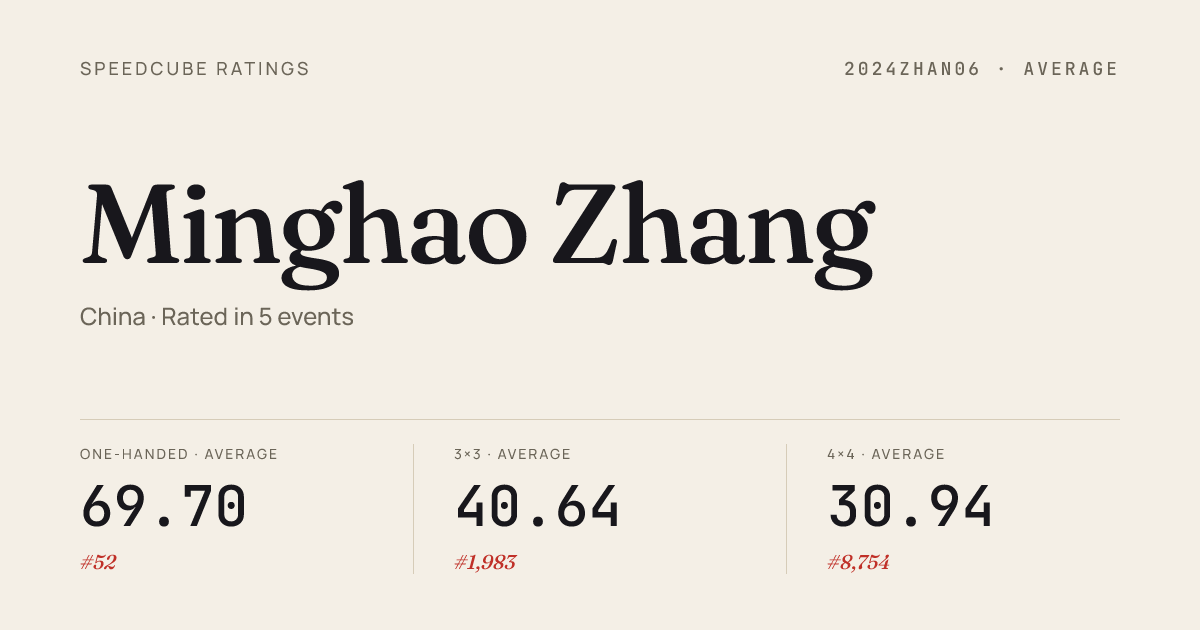 - Apr 5, 20263x3x3 One-Handed · Round 2SideEventsinPalisades2026 · 1st11.11
